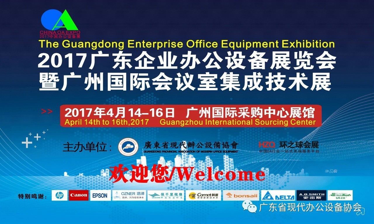 由广东省现代办公设备协会主办,广州环之球会展服务有限公司承办的“2017广东企业办公设备展览会暨广州国际会议室集成技术展览会”已于2017年4月14-16日在广州琶洲-国际采购中心展览馆圆满落幕,这是我国办公领域唯一的专业盛会。也是广东省现代办公设备协会2017年干的第一件大事!